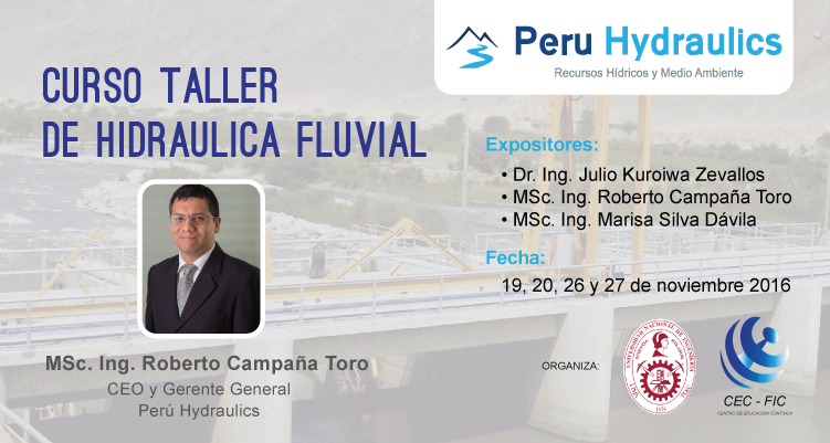 En esta oportunidad presenta el Curso Taller de Hidráulica Fluvial, con importantes expositores del sector, entre ellos el CEO - Gerente General, MSc. Ing. Roberto Campaña Toro, conoce aquí